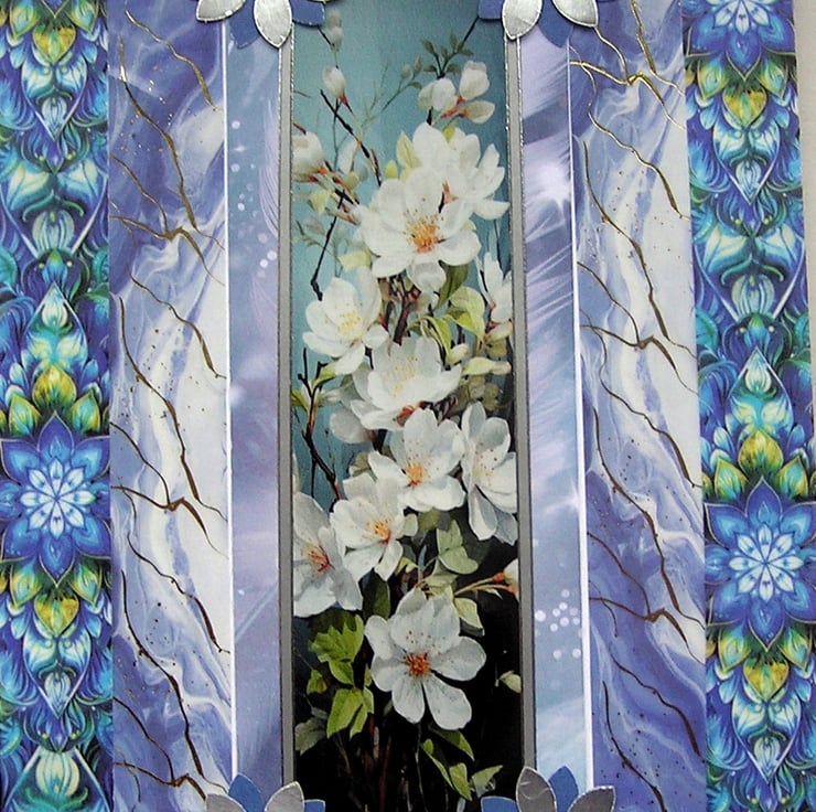 White Summer Blossom - Hand Crafted Decoupage Greeting Card - Blank 3075