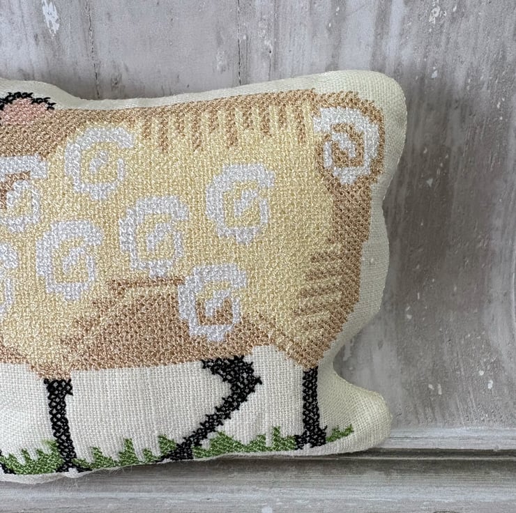 Bowl Filler machine embroidered cross stitch design. Measuring 5.5" x 4". Perfectly Pale prewashed linen fabric filled with polyester fibrefill. Little pillows of fun. Select 1 or fill a bowl full of Spring colours.