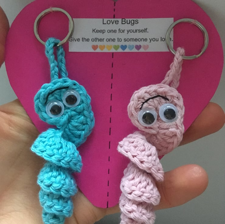 Crochet love bug keyrings.