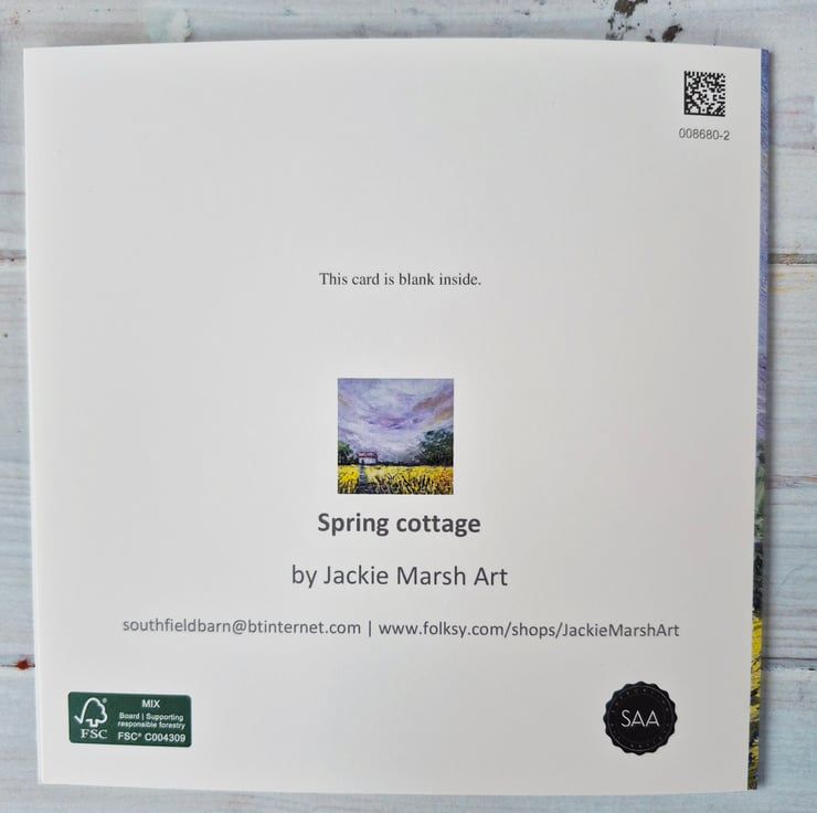 A lovely card of a cottage in the countryside. Taken from an original oil painting by Jackie Marsh.
