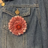Made from leftover Scheepjes yarn and repurposed buttons, felt and standard swing safety pin. All parts saved from being recycled (now we don't know if everything we put in our recycling bins IS actually recycled do we?) or landfill.