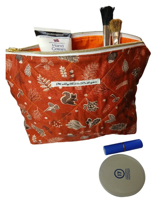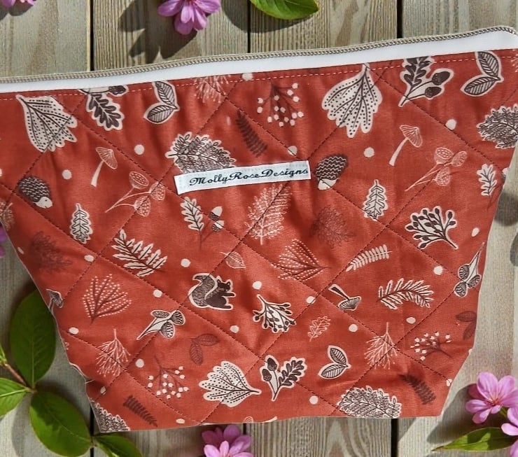 I have named this my winter collection as the fabric is printed with woodland characters and leaves. It is a beautiful rust colour with black and white printing.