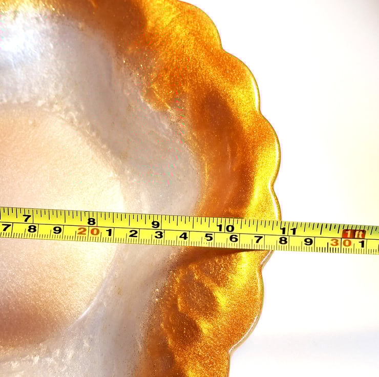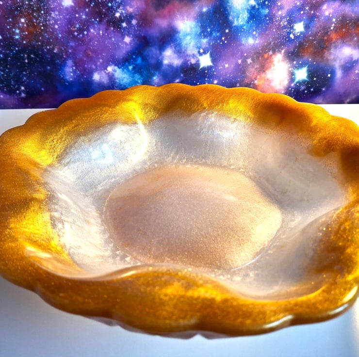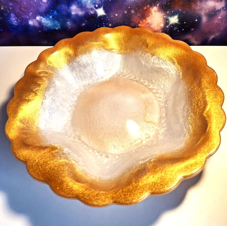Sun Burst Large Resin Decorative Bowl. Gold and White.