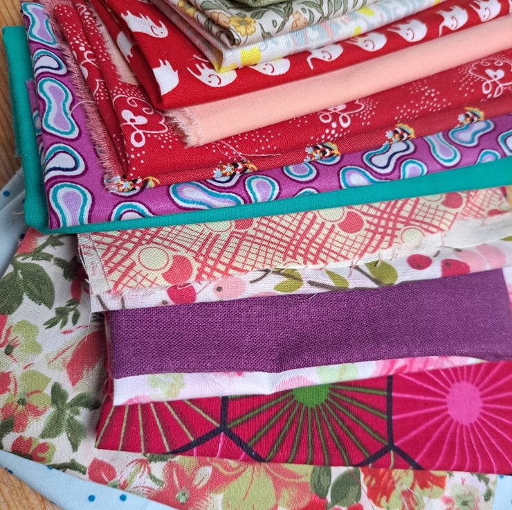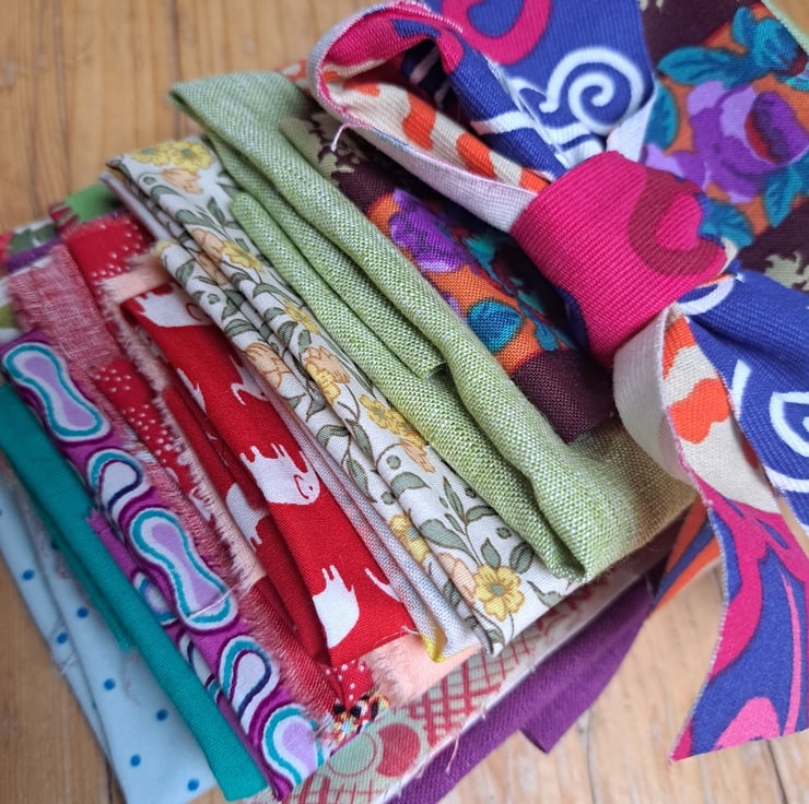 A nice big chunk of 17 colourful cottons and linens which will make any textile project zing. This generous bundle incudes a mix of quilting cottons, linen remnants and rescued and repurposed pieces.They weren't meant to coordinate and yet somehow they really, really do.