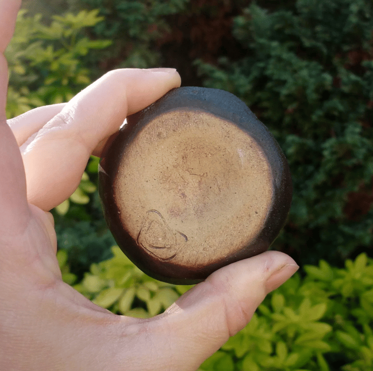 This little candle holder was hand built with stoneware clay, glazed with layers of dark brown and silky black glaze, and kiln fired. The glaze gives a beautiful vintage, almost forged metal look, it usually looks black, with hints of rich brown in the sunlight. Each piece is completely unique and may have some slight lumps or bumps ! This one is around 7cm tall.