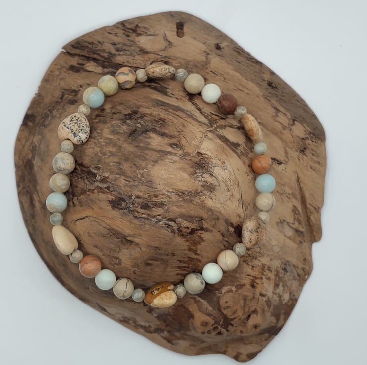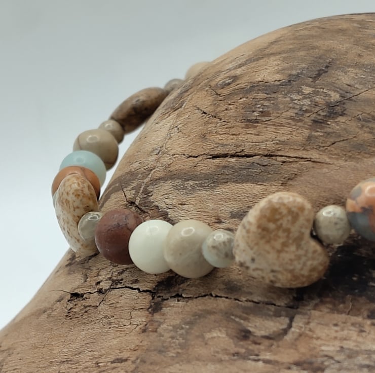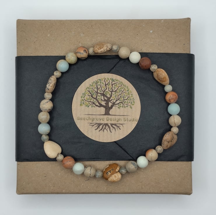 Calia 03 . Picture Jasper, Flower Amazonite, AquaTerra Jasper Stone Bracelet