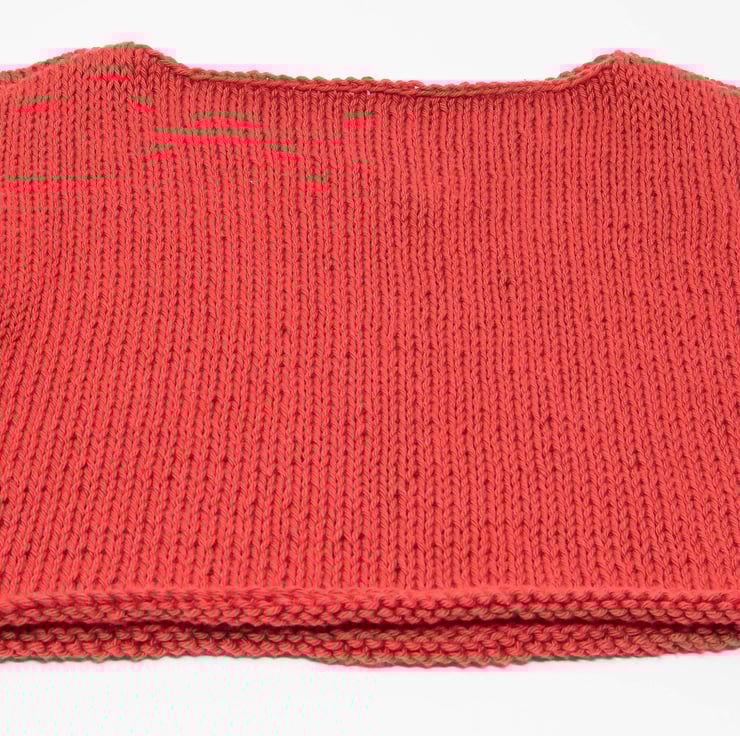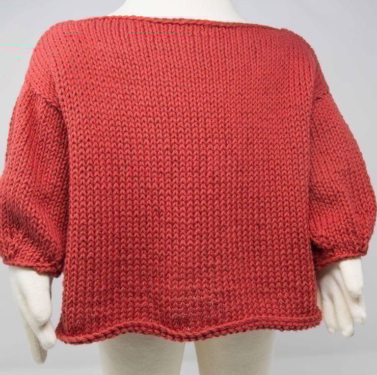 Hand knitted in 100% organic cotton, this baby jumper is in a warm, chilli red, super soft yarn.