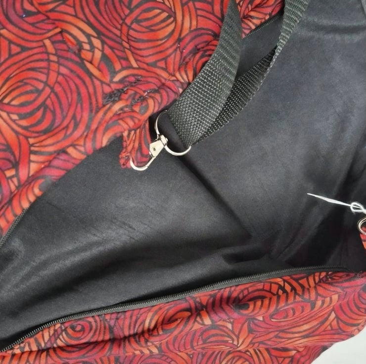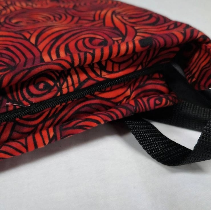 This tote bag was made using the last few metres of Fabric Freedom Red and Black Swirl abric from a much loved local sewing fabric shop that has now closed down. Rather than see this beautiful fabric disappear or sit unused, it was carefully turned into a small, limited collection of assorted handmade bags.