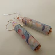 Drop earrings feature hand crafted paper beads made from old book pages and painted with acrylic paints before covering with genuine Japanese paper purchased in Japan. The beads have then been coated with several coats of varnish to seal them.