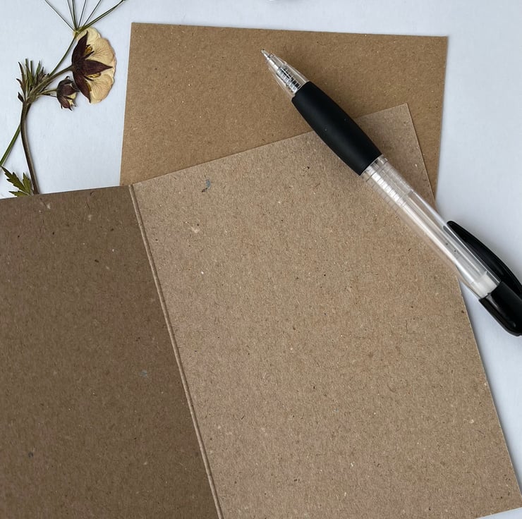 The card size is A6 (10.5 x 14.8 cm), made from kraft recycled card made in the UK.