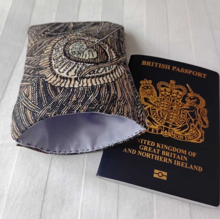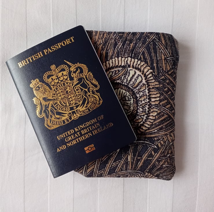 Simple holder to fit a British passport. Made in Liberty linen union, in "Hera" design, this attractive cover will help stop your passport getting dirty and dog-earred.
