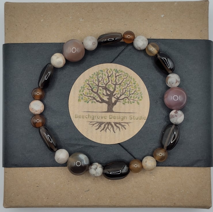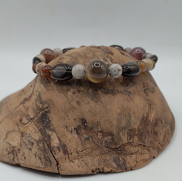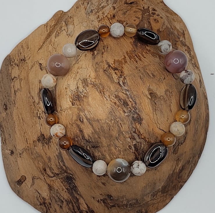 Stones Used: Smoky Quartz Botswana Agate and Maifanite Stone Bracelet
