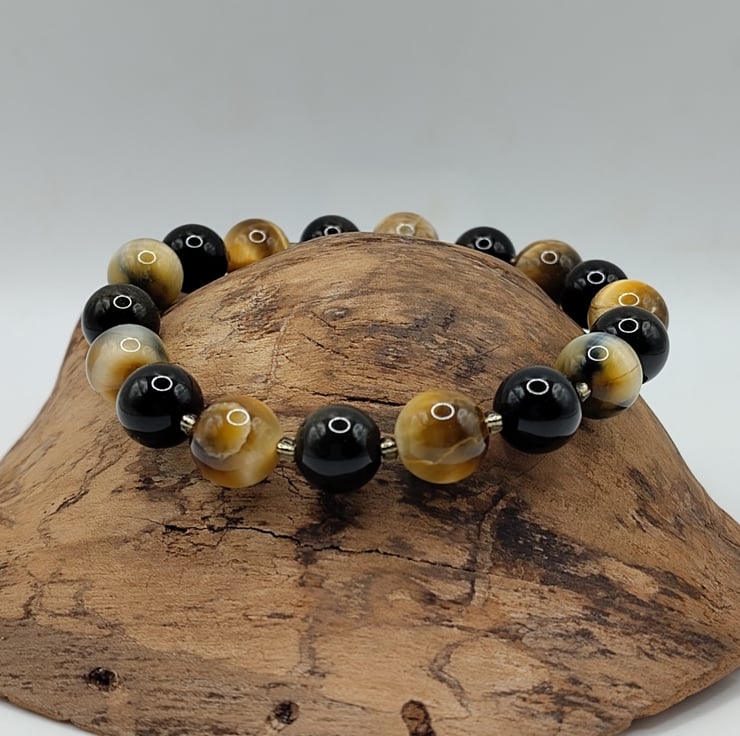 Saturn Cruise. Gold and Blue Tigereye, Golden Sheen Obsidian Stone Bracelet from the ‘Fierce’ series by BDS.