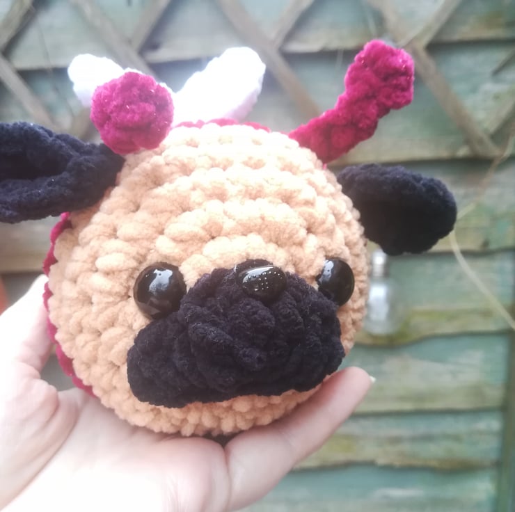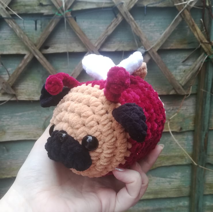 The adorable love pug makes the best gift for Valentine's Day for any pug lovers. It is made using the softest squishy yarn, and is a pug dressed as a little love bug!