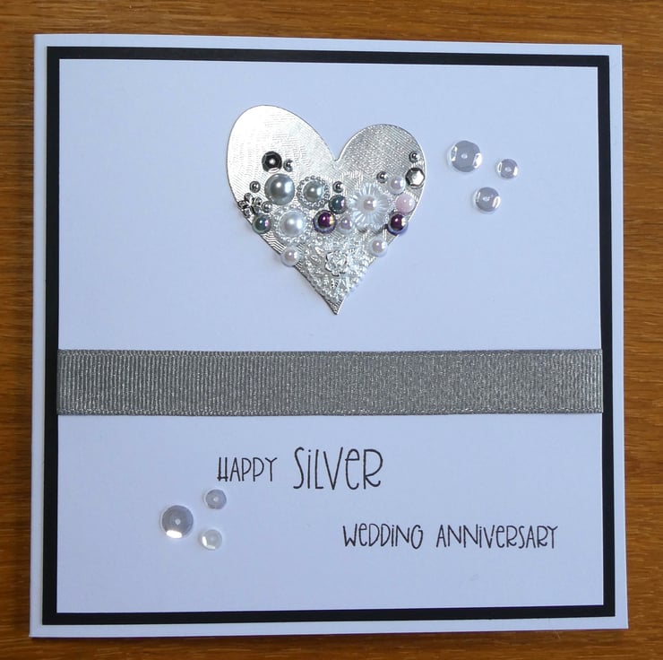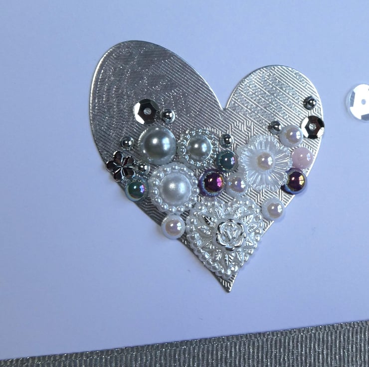 Embellished Heart Silver Wedding Anniversary Card - 25th Anniversary