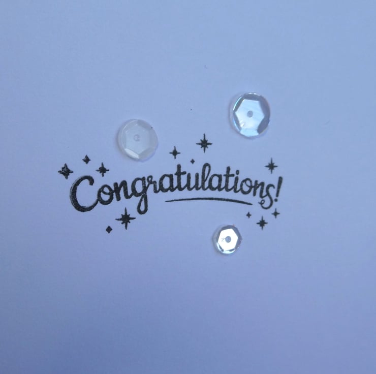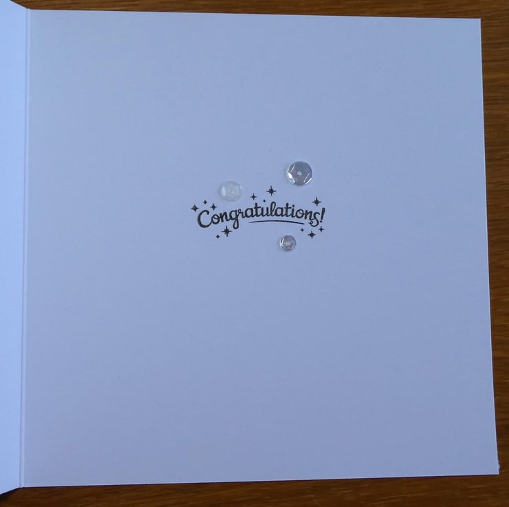 The message Congratulations surrounded with stars has been hand stamped on the inside, highlighted with more sequins, leaving space for your own message.