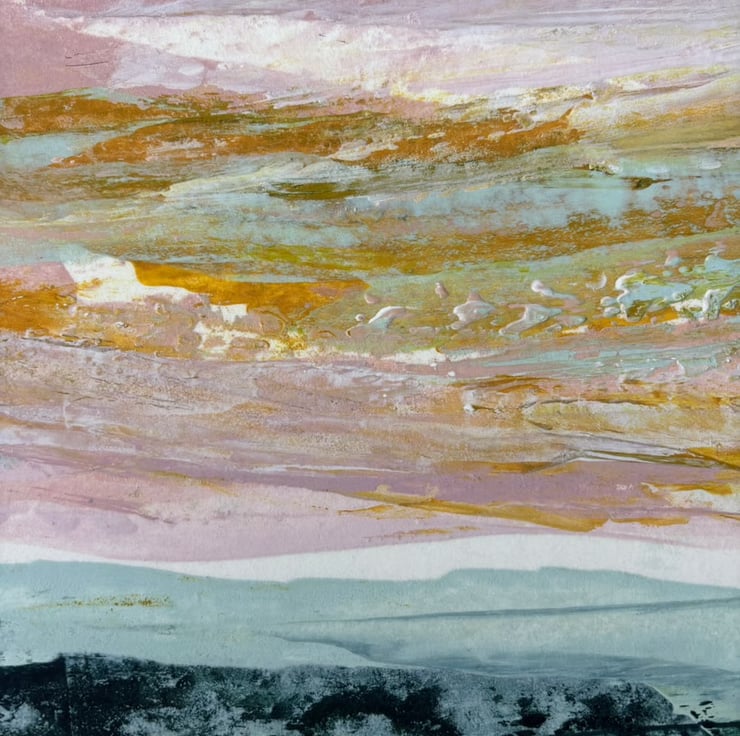 Art print of acrylic, semi-abstract seascape. The ‘Serene Shores’ collection is inspired by that beautiful feeling of serenity as the sun sets above the waves at the end of the day.