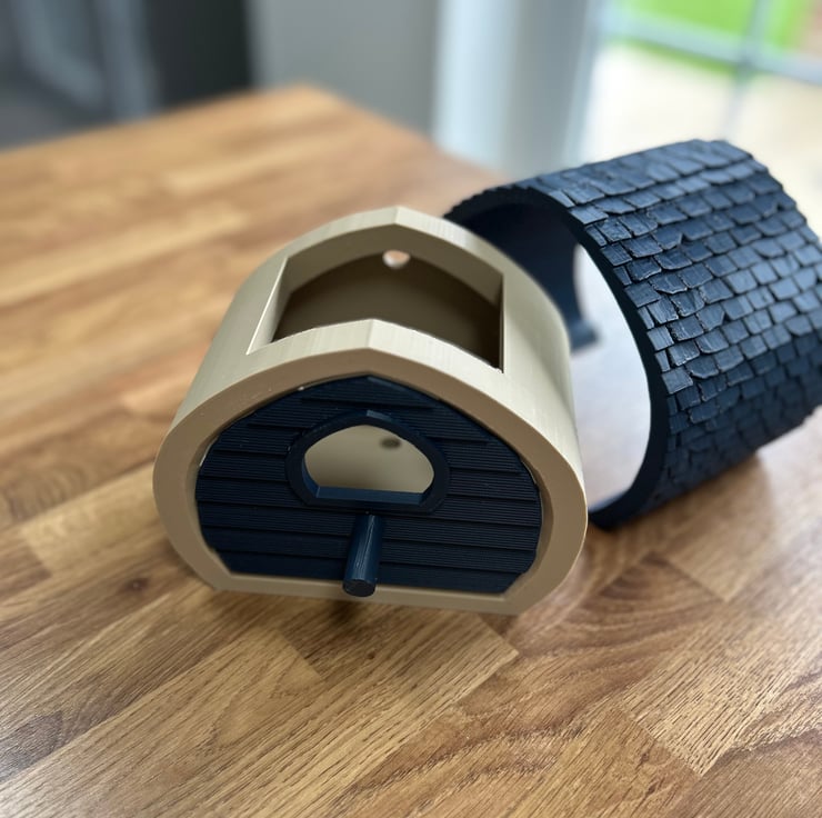 Each bird house is 3D printed by me using PLA and carefully checked before it’s ready for a new garden home. It’s a small, thoughtfully designed piece intended to bring a bit of joy to both birds and the people who watch them.