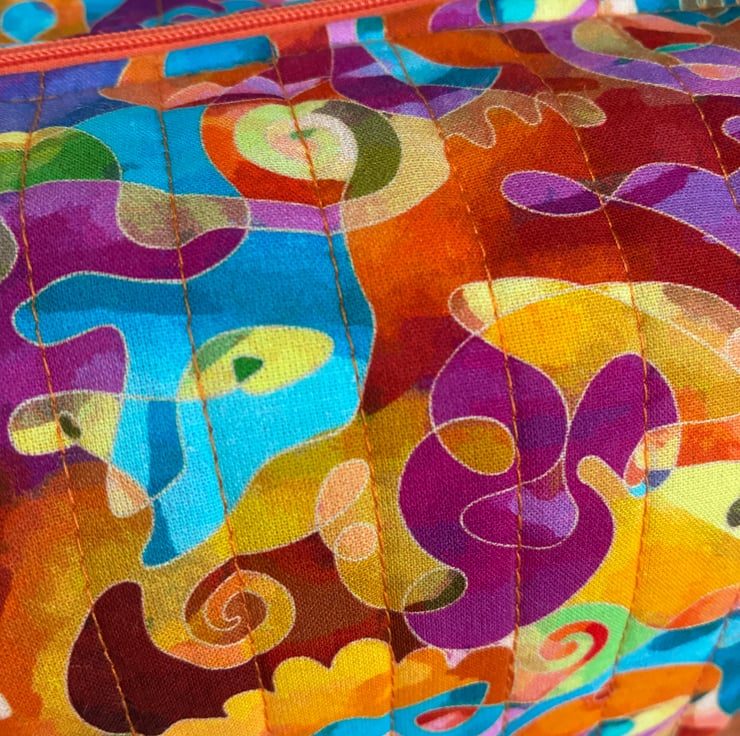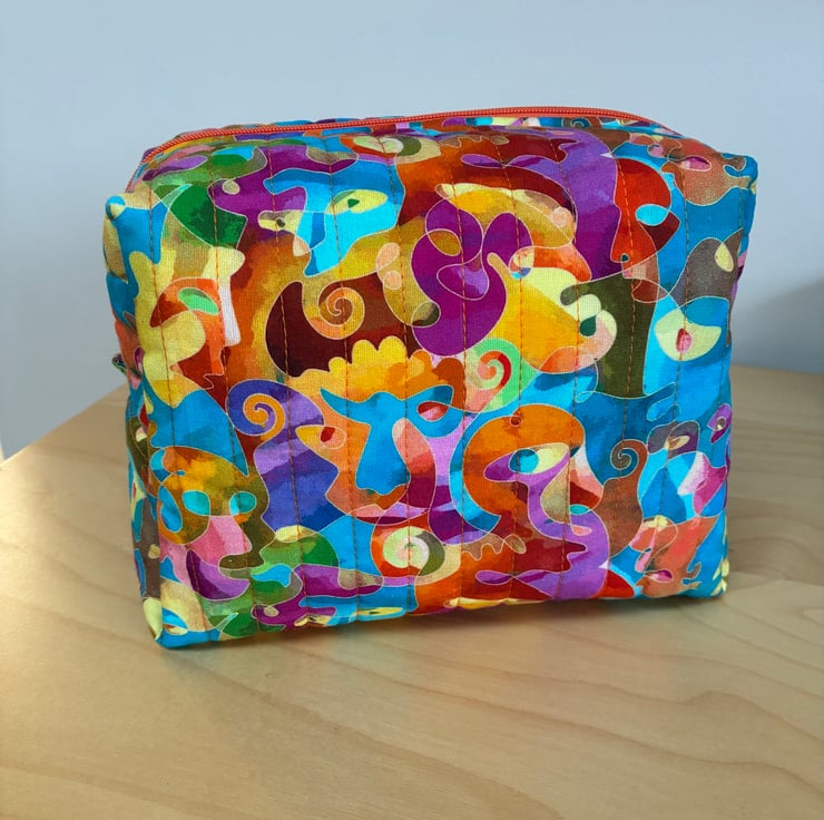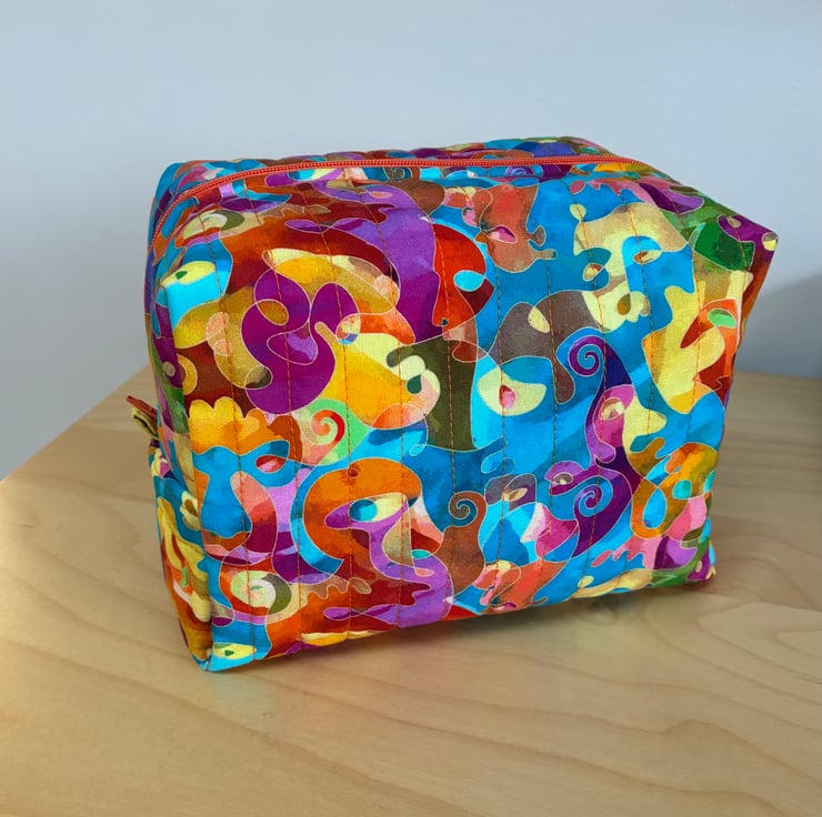 The box shaped Wash Bag (or large makeup bag) is made in this lovely bright abstract print.