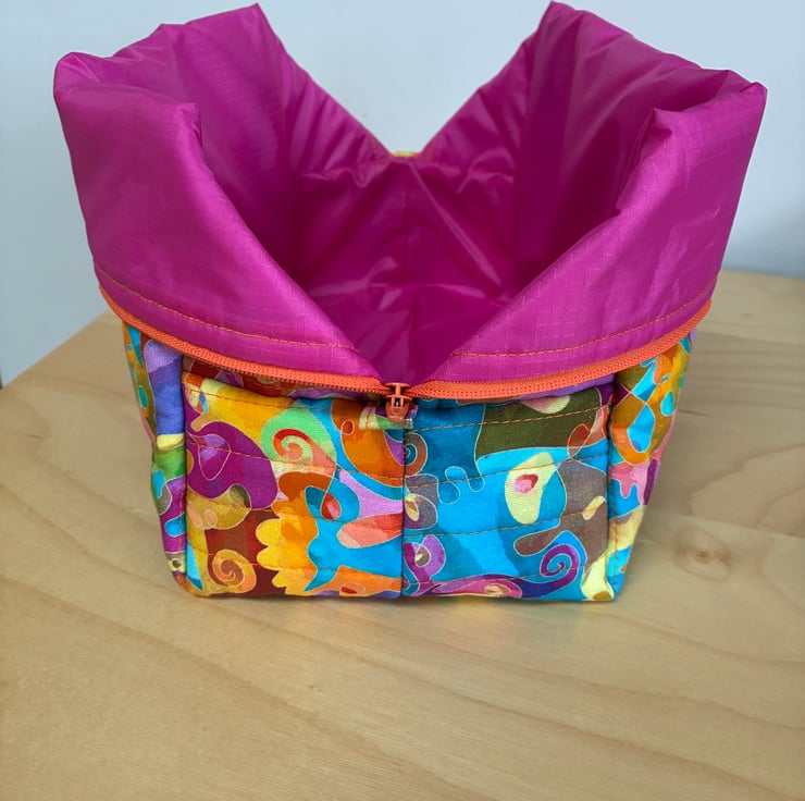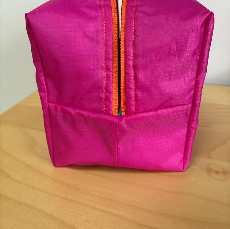The box shape wash bag was created as an alternative to straight sided bags that I had previously made. It took a while to perfect the method of the fully enclosed lining, but it was worth it to achieve such a lovely neat finish.
