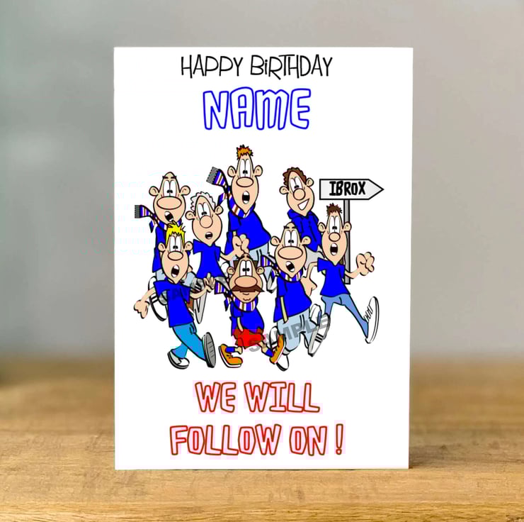 Personalised Rangers Football Birthday Card, A5 size, Fan, Bestie, Dad, Mum, Son