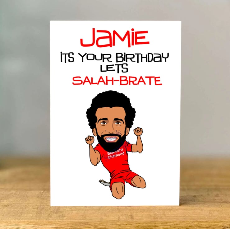 Personalised Mo Salah Birthday Card, Liverpool , dad, mum, sister, brother, son,