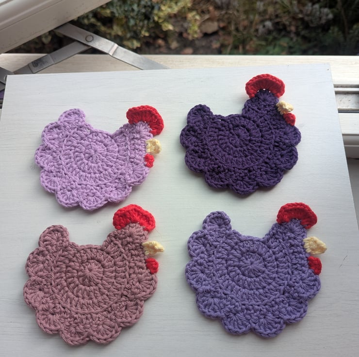 These cotton crotchet coasters are the perfect addition to you afternoon tea or coffee! The all purple chicken coasters are the perfect country feel or a quirky conversation starter for you and your guests!
