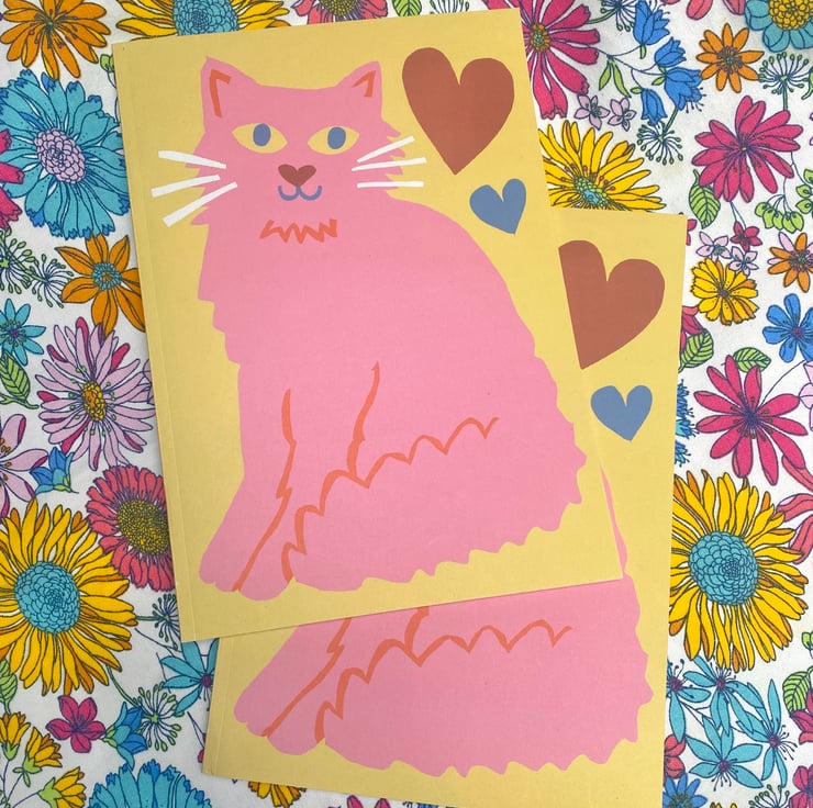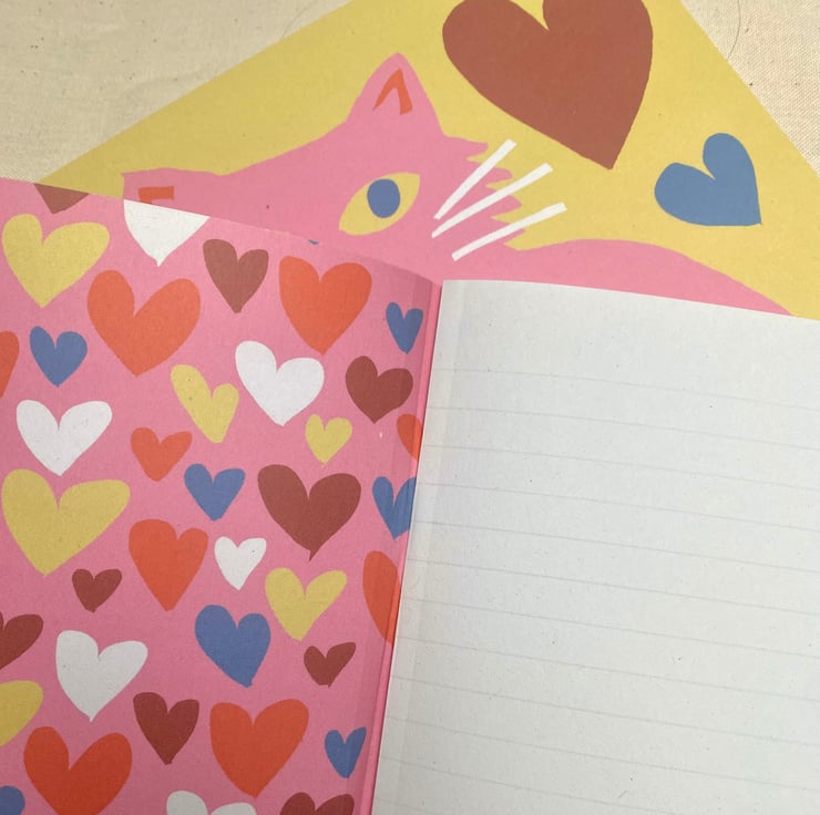 Pink and yellow cat A5 (148x210mm) lined notebook 48 pages