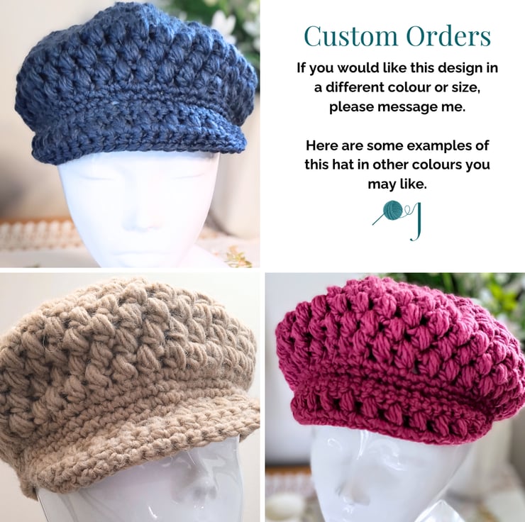 If you like this vintage style baker boy cap, but would prefer a different colour or size, please send me a message and I will be happy to create a unique cap for you.