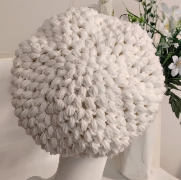 Inspired by the 1960s fashion from the TV show, The Queen’s Gambit, this crochet women’s newsboy cap in cream will give a swinging Sixties twist to your wardrobe.