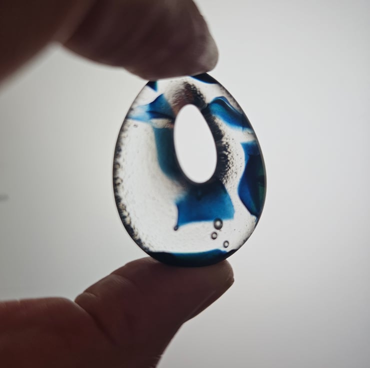 A perfect small gift to show someone you care for them. Or beautiful to keep or yourself. Can also be used as a cord pull. Hand cut and kiln fused, a unique item. Very tactile lightly textured underneath and glossy smooth on top. Will arrive wrapped in tissue and in a plain white box tied with ribbon. It can be posted directly to the gift recipient with a printed message of your choice. Approximately 4cm/1.5" long. The gift box is 6cm/2.5" square.. Photo with 3 being worn compares Large, medium and small. Please note outer packaging may be recycled.