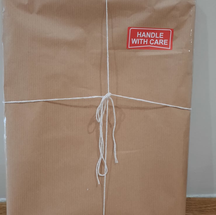 Your painting will be lovingly wrapped in bubble wrap and kraft paper and tied with string.
