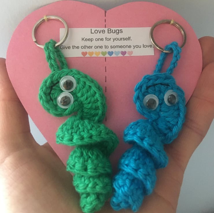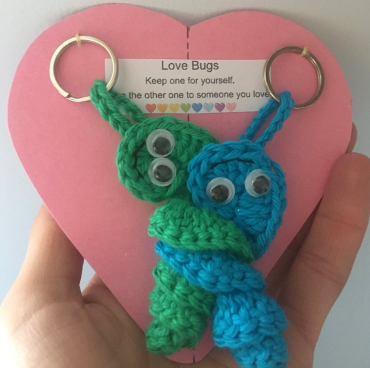 Crochet love bug keyrings.