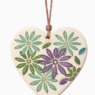 This wood heart has been decoupaged with a pretty patterned paper. Three wood beads have been added to the jute string. It has been highlighted with a dark copper metallic dotting for a little sparkle.