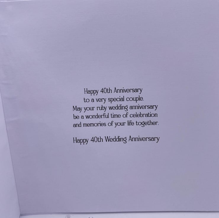 A brand new Ruby anniversary card - celebrating 40 years of marriage, with a sentiment included.