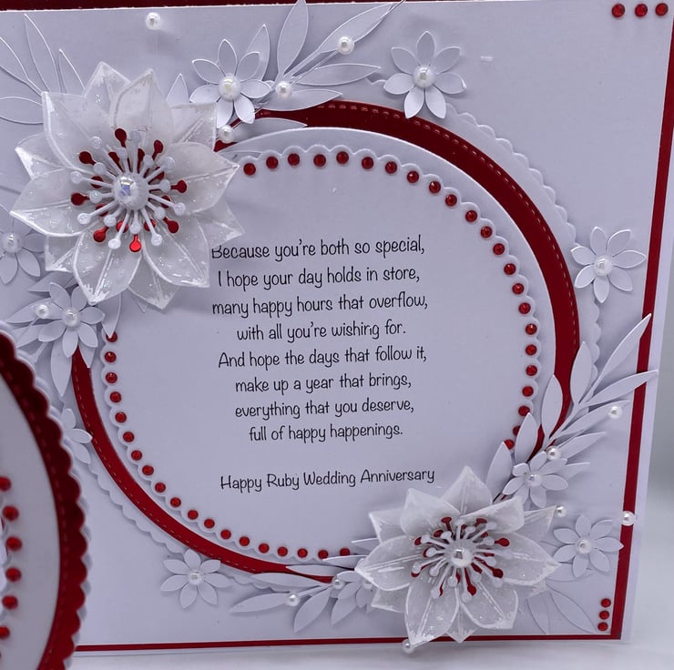 A stunning Ruby anniversary card - celebrating 40 years of married bliss, with a sentiment included within the card.