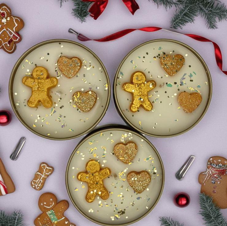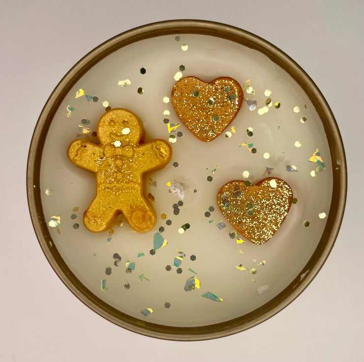 Topped with a golden gingerbread figure and shimmering wax hearts, Sugar Kisses sparkles with festive magic. Each flicker of the flame releases waves of nostalgia, think warm kitchens, laughter, and the joy of sharing something homemade and full of love.