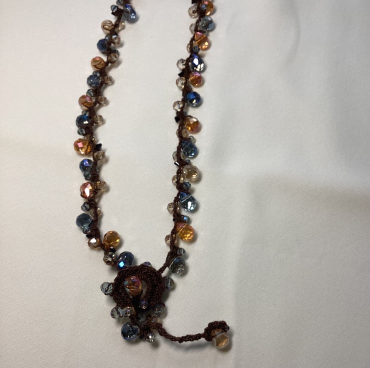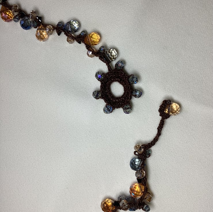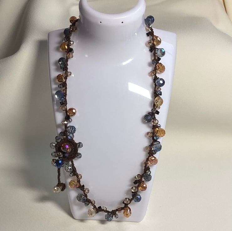 A stunning crochet beaded necklace made by me in my home studio in West Midlands.