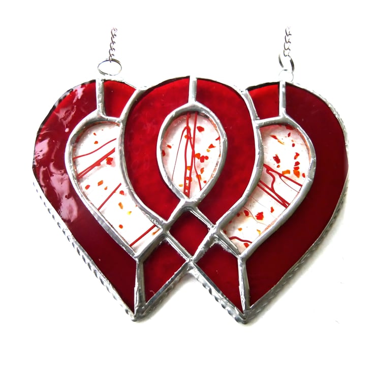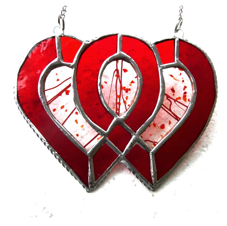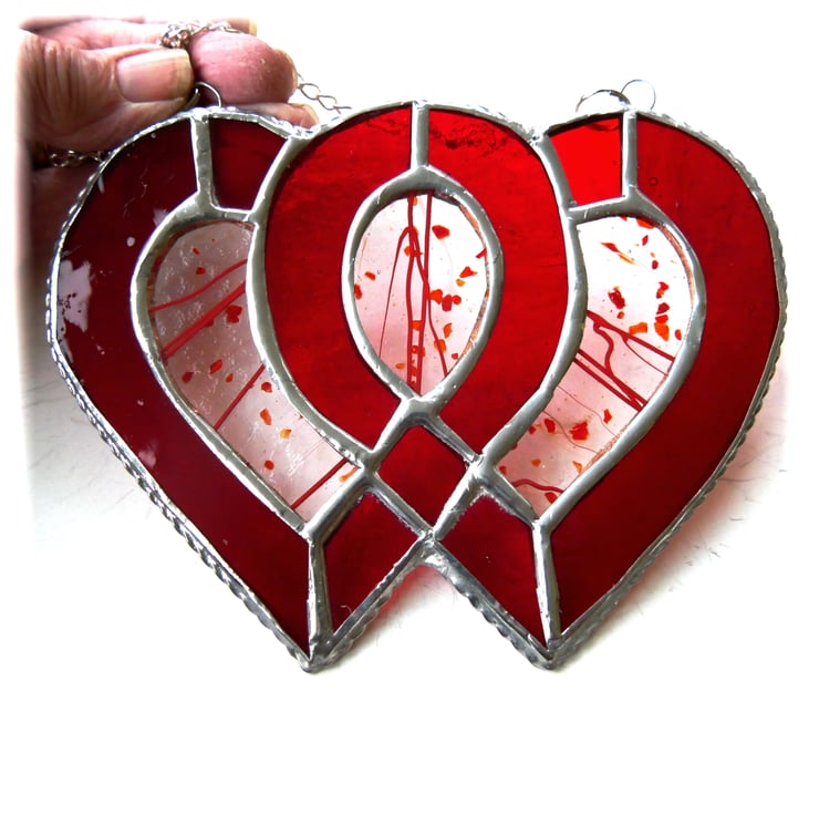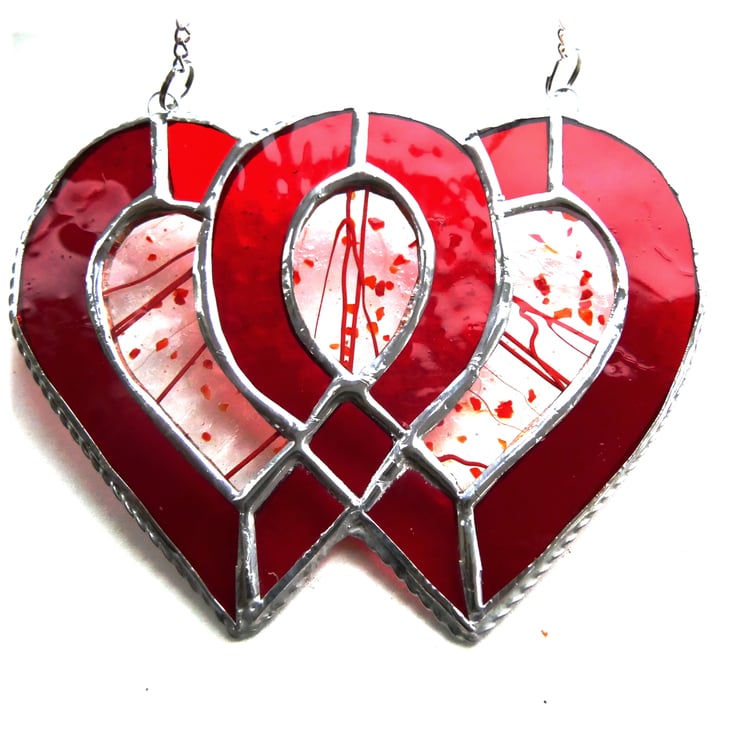 Entwined Heart Suncatcher Stained Glass Ruby 40th Wedding