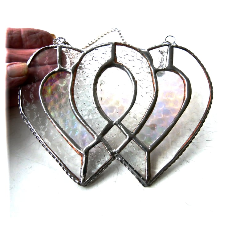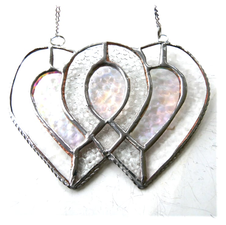 I've used some iridised clear cut glass for the 2 hearts to give lots of sparkle and also some rather prettily textured diamond cut clear glass.