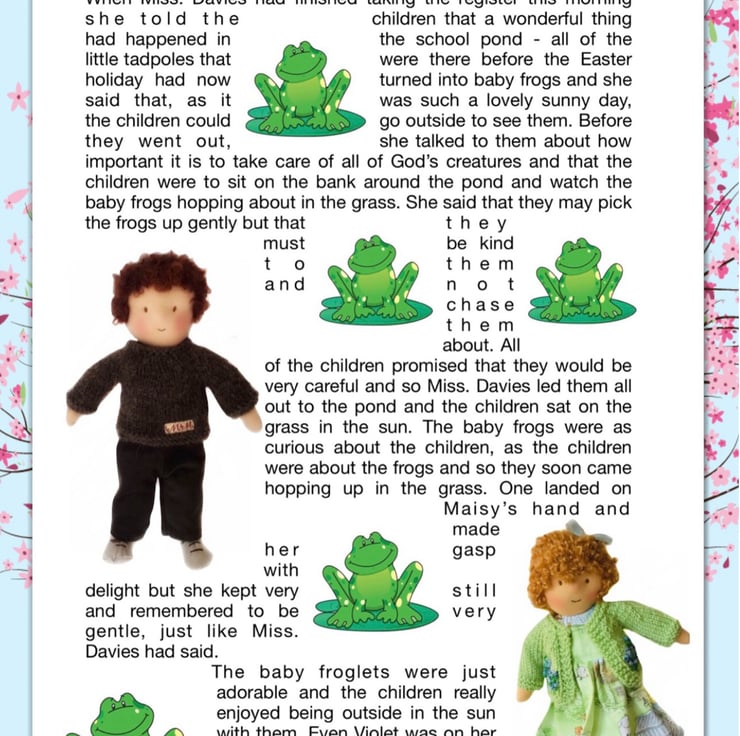 There are other children in Maisy’s class at school - Violet, Billy with his pet rabbit, Amber, Tilly, Rosie and her kittens, Amelia, Ruby, Marigold, Bobby with Max the dog, and the twins Oliver and Olivia, who have a puppy called Oscar. The dolls are all 26cm tall and baby Daisy is 16cm. Maisy and Mo love nothing more than having adventures with their friends. You can read about their adventures on my Facebook and Instagram pages - Maisy Muffin Rag Dolls and on my Mulberry Green Pinterest boards.