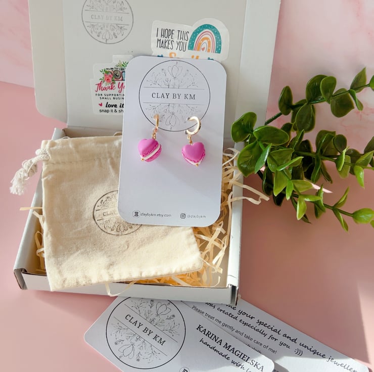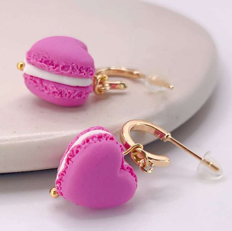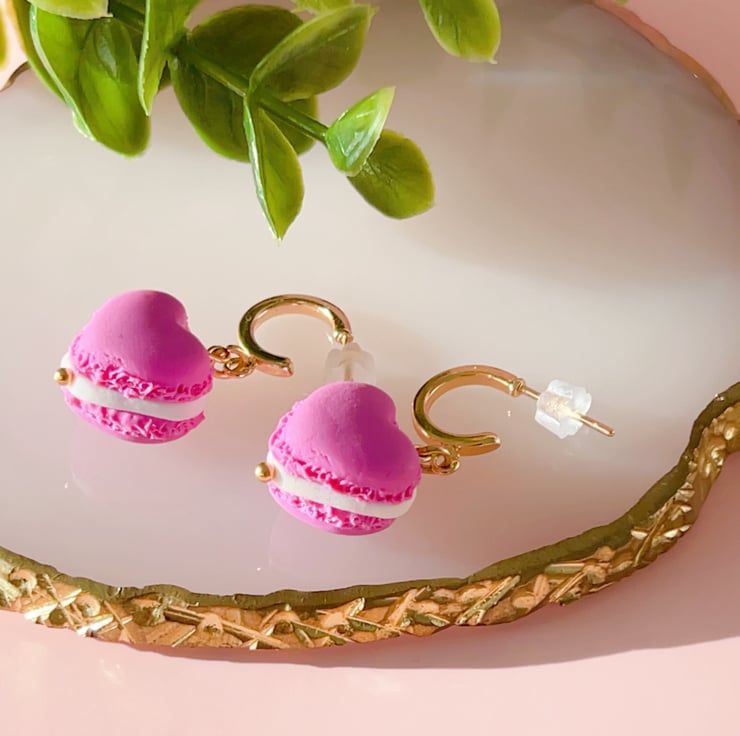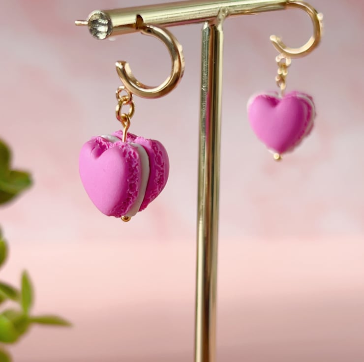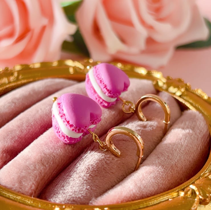 Pink heart macaron earrings for anyone who wants a tiny “sweet treat” detail that upgrades a basic outfit in seconds. Light on the ears, big on compliments.