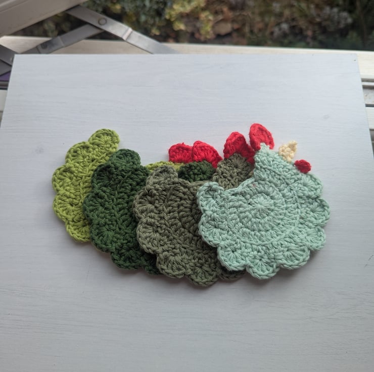 These cotton crotchet coasters are the perfect addition to you afternoon tea or coffee! The all Green chicken coasters are the perfect country feel or a quirky conversation starter for you and your guests!