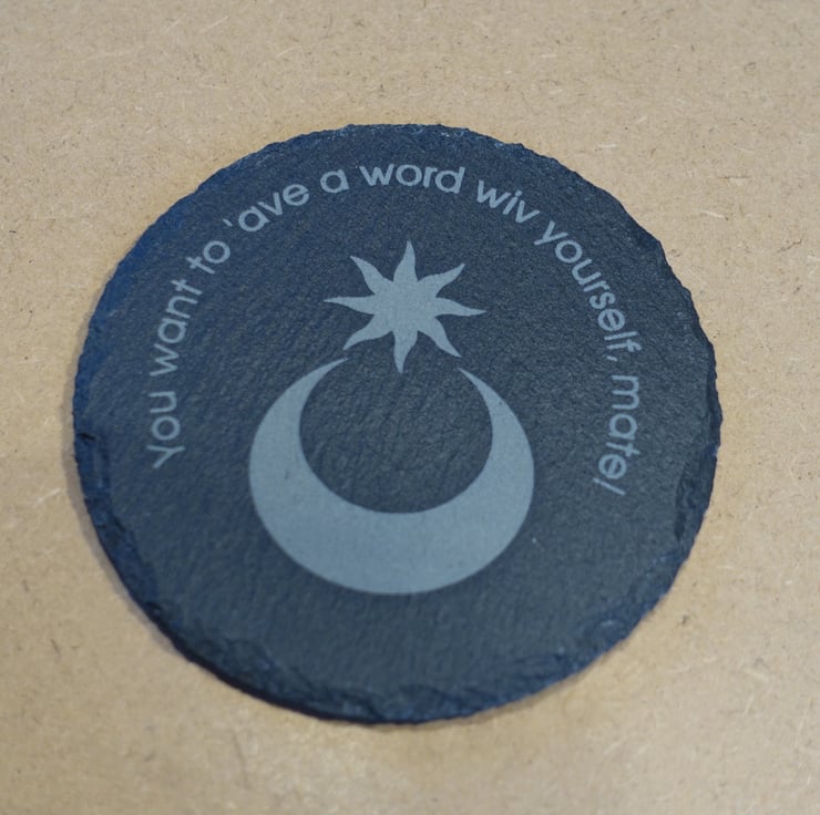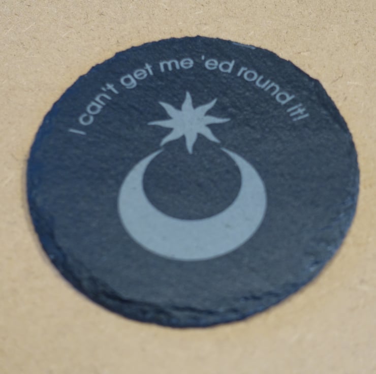 The slate is approximately 100mm diameter with the engraving approximately 90mm.