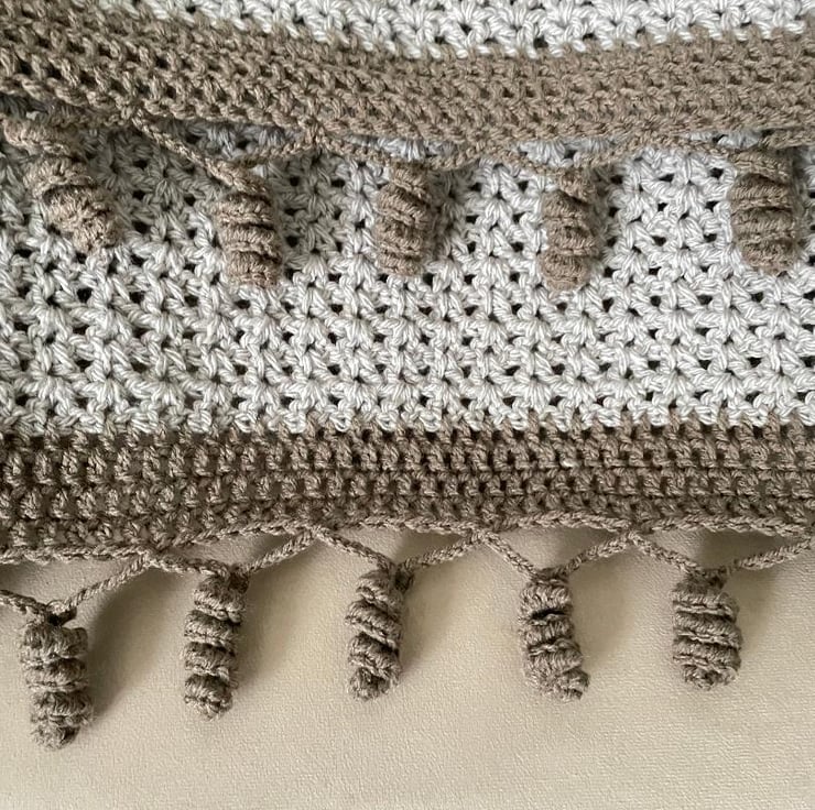 Design: Striped pattern with decorative crochet tassels