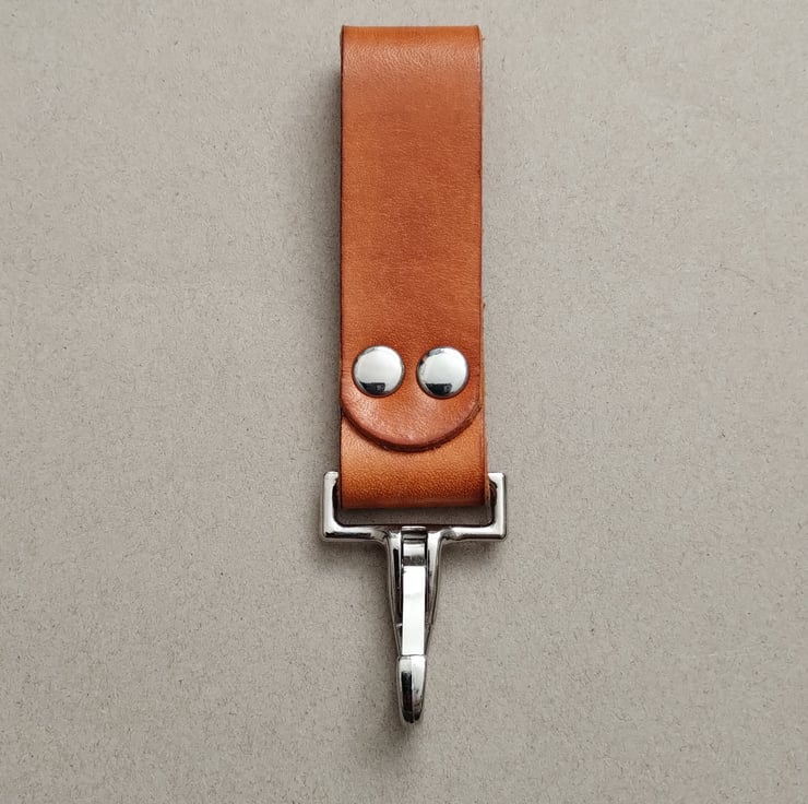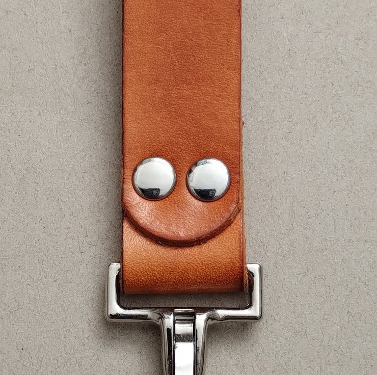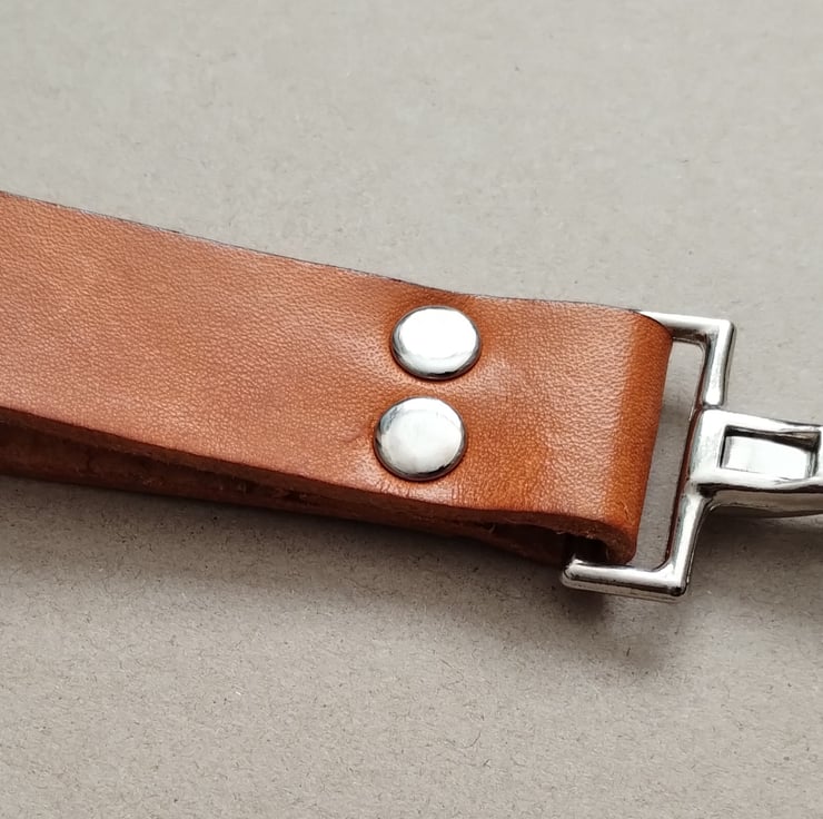 Overall length is 125mm / 5", the leather is 25mm wide and approx. 2.5mm thick.