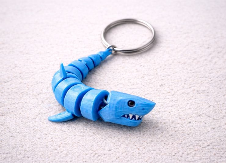 This articulated shark keychain features a fun, flexible design made up of multiple linked segments, allowing the shark to move and bend naturally. The articulated body gives it a playful character while remaining lightweight and durable for everyday use on keys, bags, or backpacks.