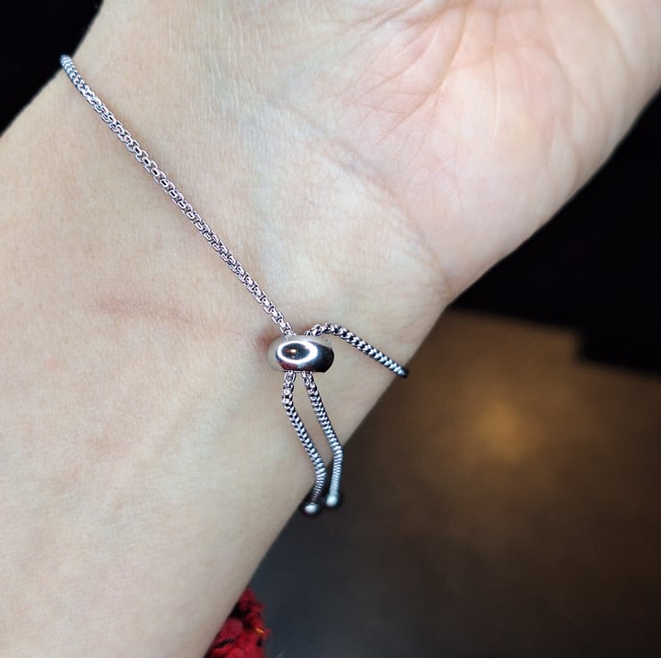 - Adjustable silver chain with ball-end slider