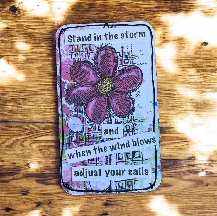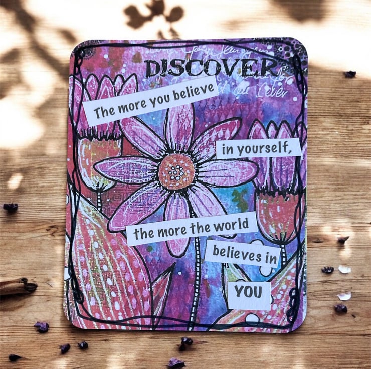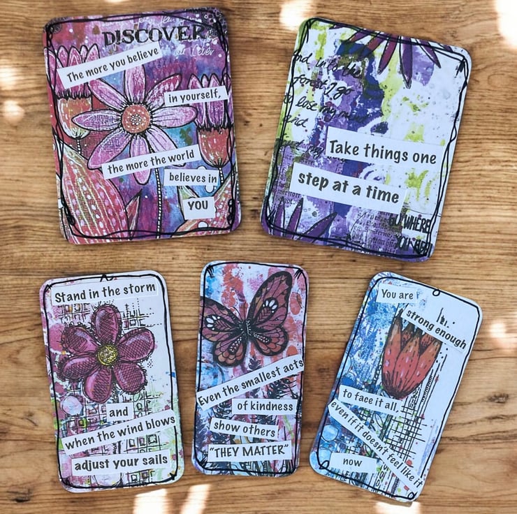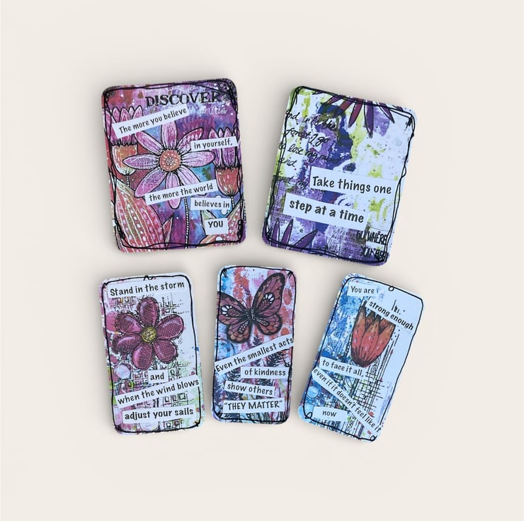 Bring a little encouragement to someone's day with this set of five handmade affirmation art cards, each featuring uplifting words paired with colourful, nature-inspired mixed media designs.