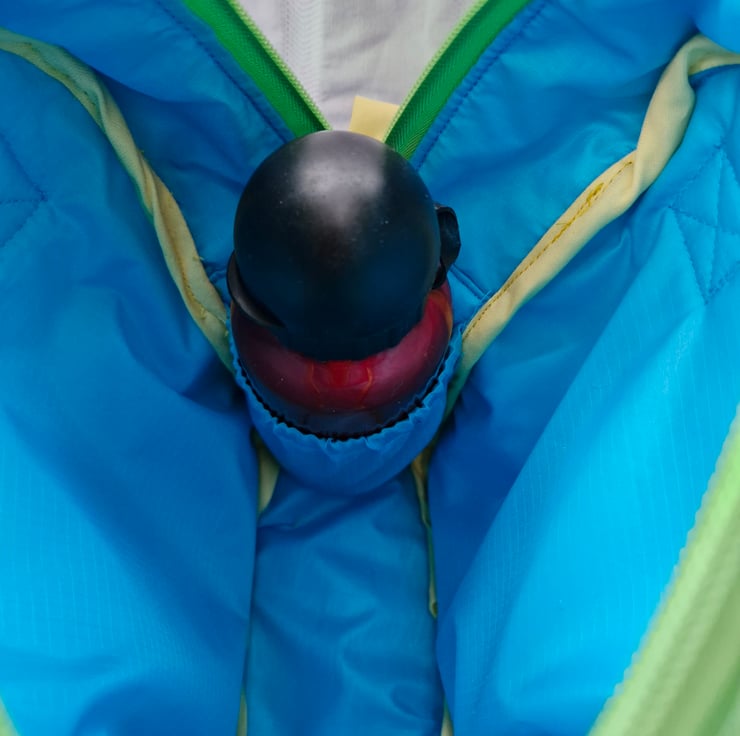 The chunky nylon zip opens around this sides to allow access.